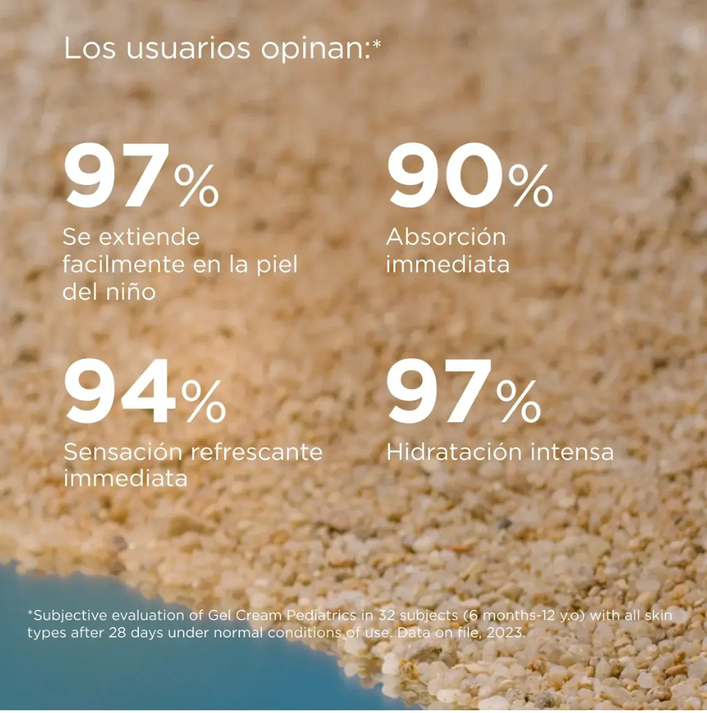 Protege la piel del niño con Gel Cream Pediatrics SPF 50, el fotoprotector con efecto calmante que hidrata como una crema y refresca como un gel. Con Wet Skin, facilita la aplicación en piel húmeda sin dejar residuo blanco.